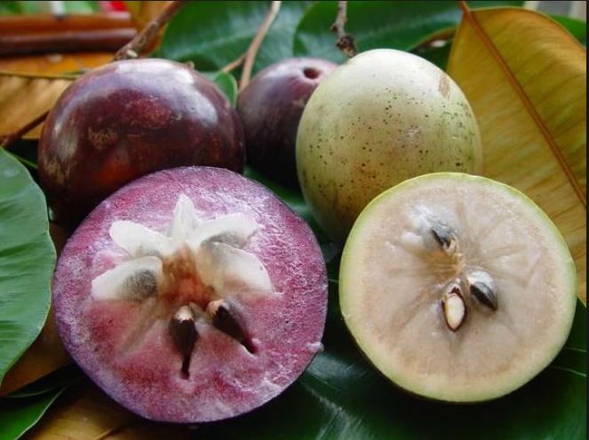 The fruit appears round with a smooth texture that is often green or violet. But when cut open, it reveals a fragrant white flesh resembling the shape of a star, of which how it is named after.
